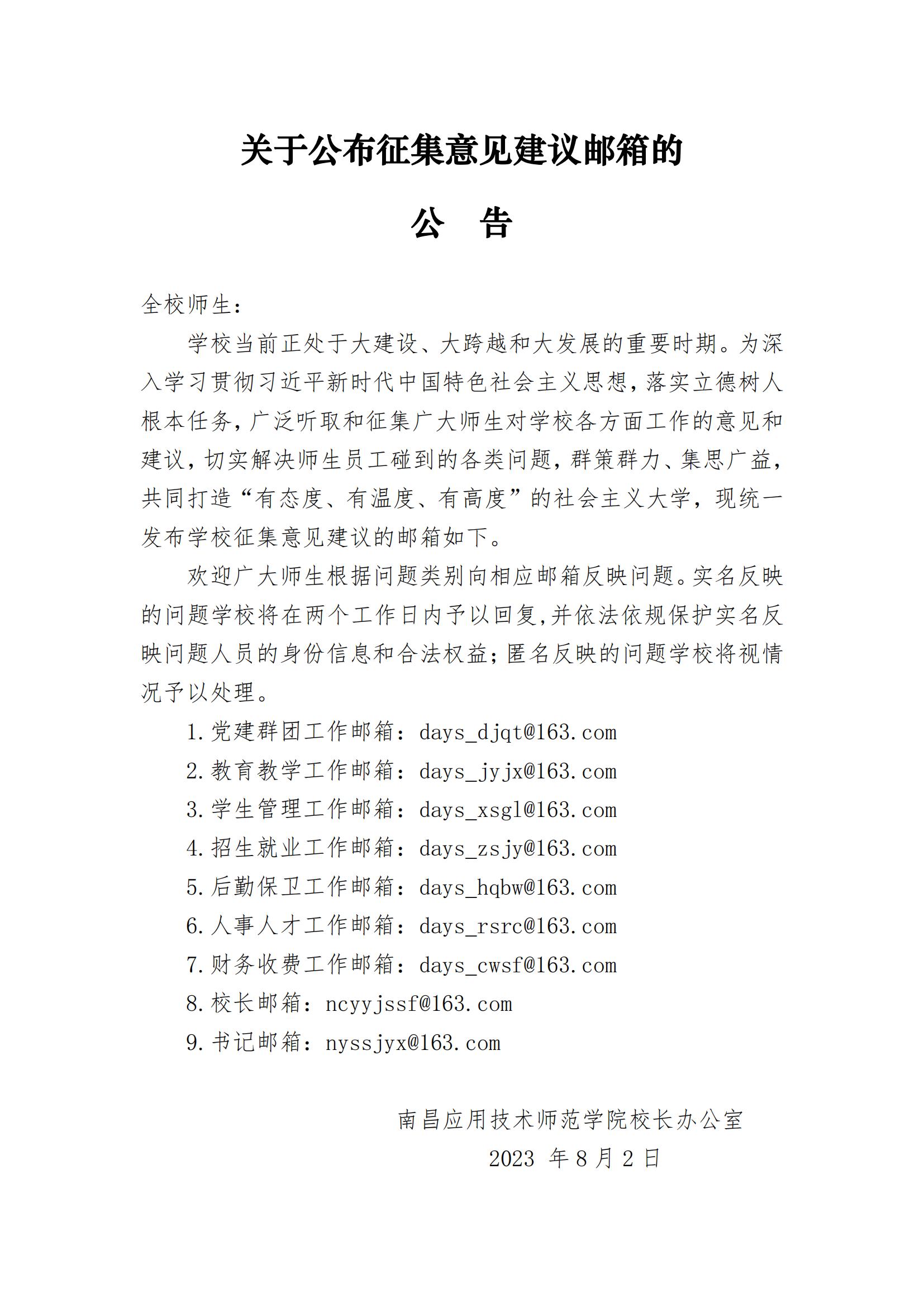 關于公布征集意見建議郵箱的公告